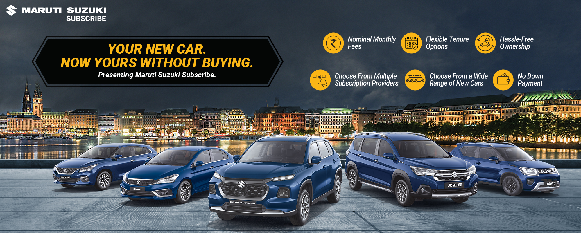 Maruti Suzuki Subscribe enables all customers to enjoy driving their preferred Maruti Suzuki cars without having to deal with all the financial responsibilities that come with owning a car.All you need to do is opt for a monthly subscription plan at a fixed monthly fee, which includes the routine maintenance and insurance costs, and choose a flexible tenure. At Vishal Car World in, Laipuli, Tinsukia, all Hatchback, Sedan, SUV, the MUV models line-up includes Baleno, Invicto, EVitara, Jimny, Ciaz, Ignis, Fronx, Grand Vitara, XL6. Here, you will enjoy Maruti Suzuki Subscribe benefits such as: